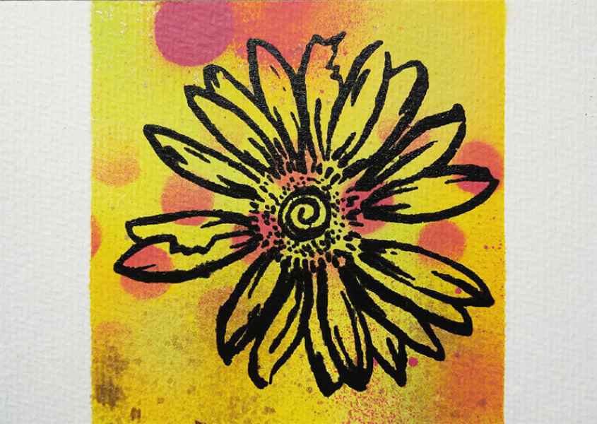 Auflage von 20+1, 5/0 fbg. / 90T & 80T-Gewebe / Acryl + Siebdruckmedium | DIN A6 | auf gestalteten Untergrund