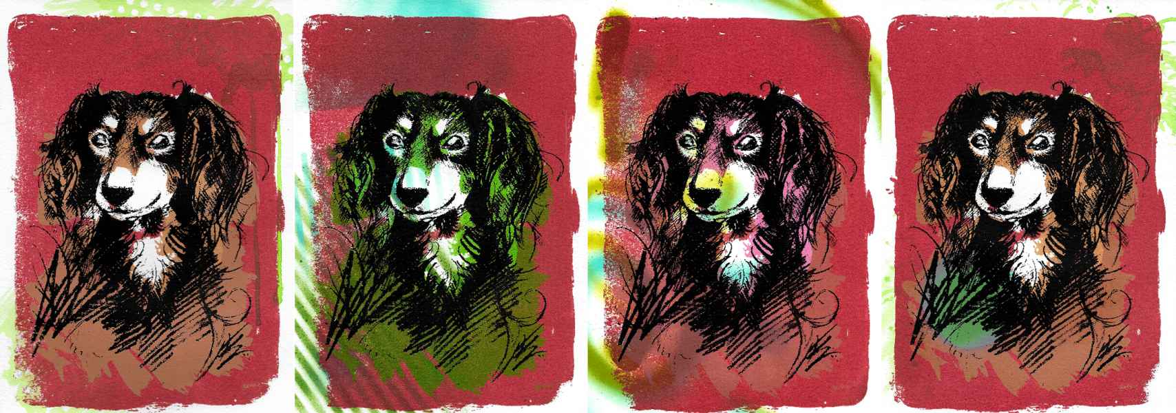 Auflage: 25+1, 3/0 fbg. / 80T & 90T-Gewebe / Acrylfarbe + Siebdruckmedium | DIN A4 | auf gestaltete Untergründe
