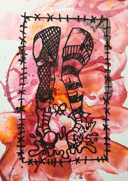 Auflage: 6+1, 1/0 fbg. / 55T-Gewebe (erstes händisches Siebmotiv - ehem. Textilmotiv aus 2018) / Acrylfarbe | 35x50cm | auf vers. gestalteten Untergründen