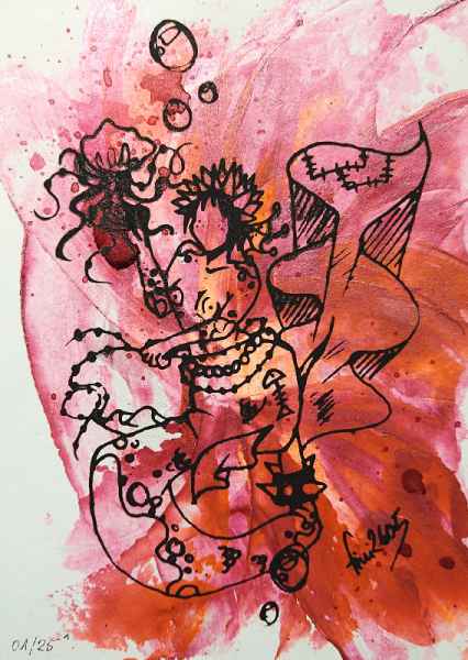 Auflage von 50+1 Drucken, 3/0 fbg. / 90T-Gewebe / Acrylfarbe + Siebdruckmedium, DIN A4