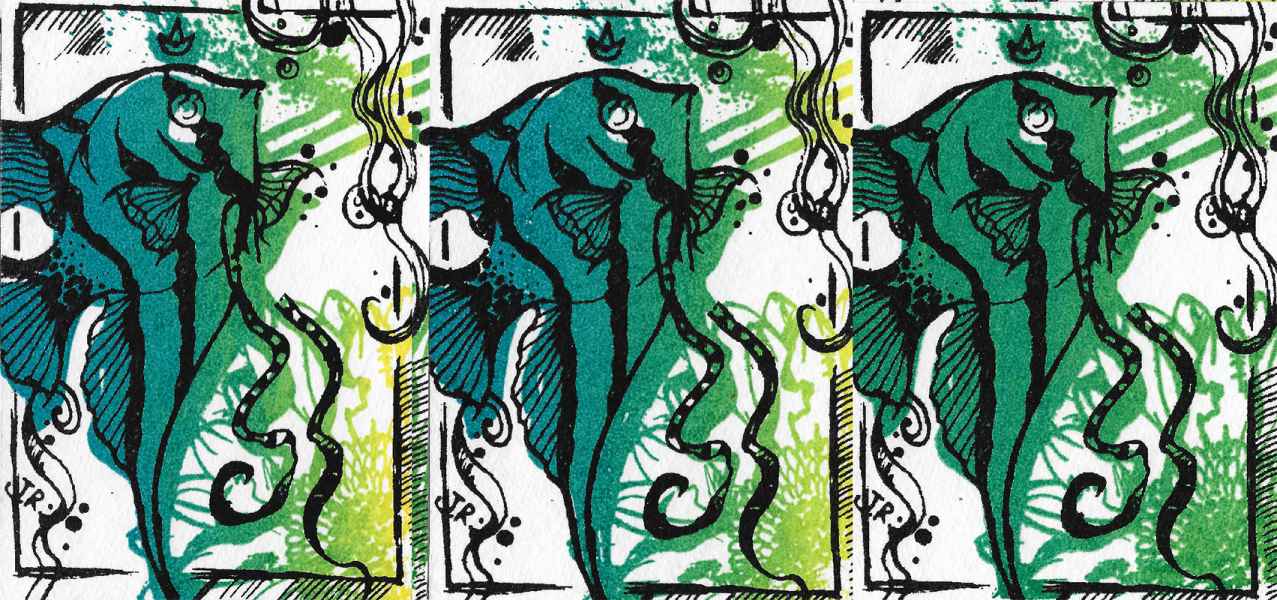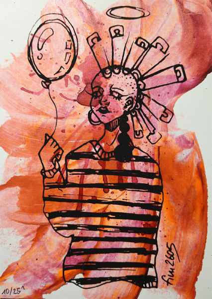 Auflage von 25+1 Drucken (?), 2/0 fbg. / 90T-Gewebe / Acryl + Siebdruckmedium & Wasserfarbe | DIN A6