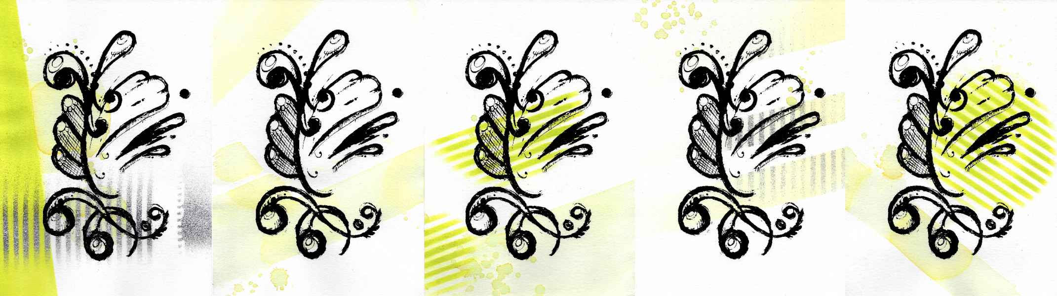 Auflage von 5+1 Drucken, 1/0 Siebmotiv / 80T-Gewebe / Acrylfarbe + Siebdruckmedium, DIN A4