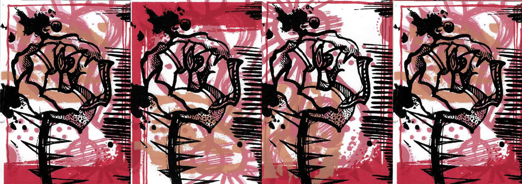 Auflage aus 6 von 25 geplanten Drucken, 4/0 Siebmotive / 80T-Gewebe / Acrylfarbe, DIN A3