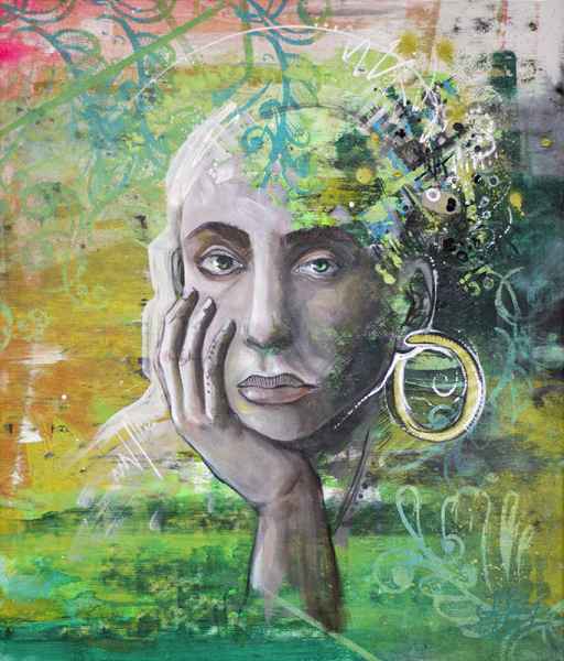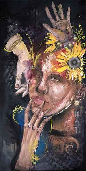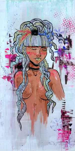 50x80cm | Leinwand | Acryl, Sprayfarbe, Pigment + Binder, Tusche, Ölpastellkreide, Wasserfarbe