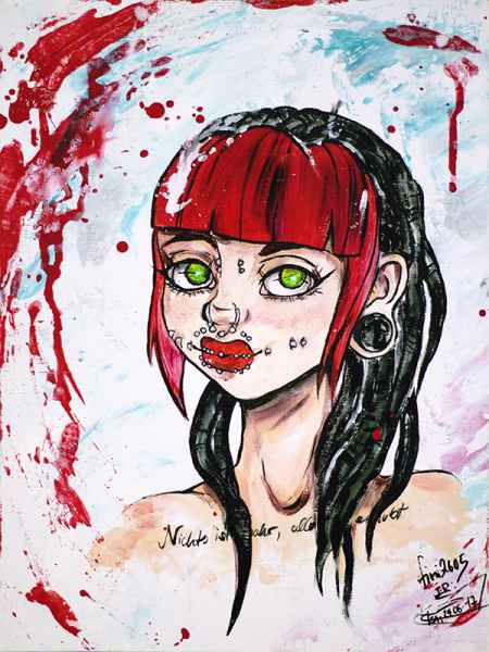 30x40cm | Papier | Acryl, Tusche, Kohle, Pastellkreide, Ölpastellkreide, Sprayfarbe, Graffitimarker