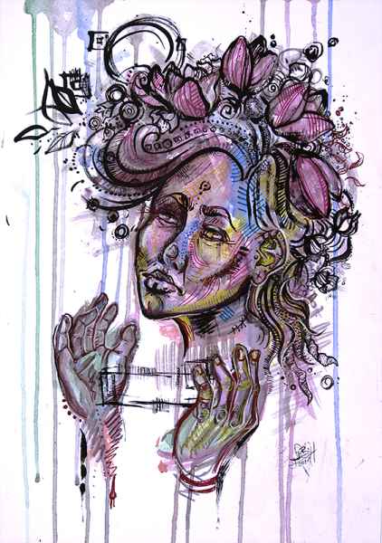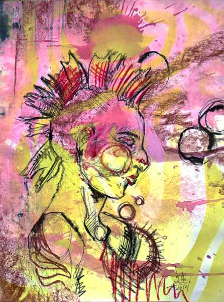 35x53cm | Papier | Acryl, Tusche, Wasserfarbe, Kohlestift, Sprayfarbe | verkauft / sold / in Privatbesitz