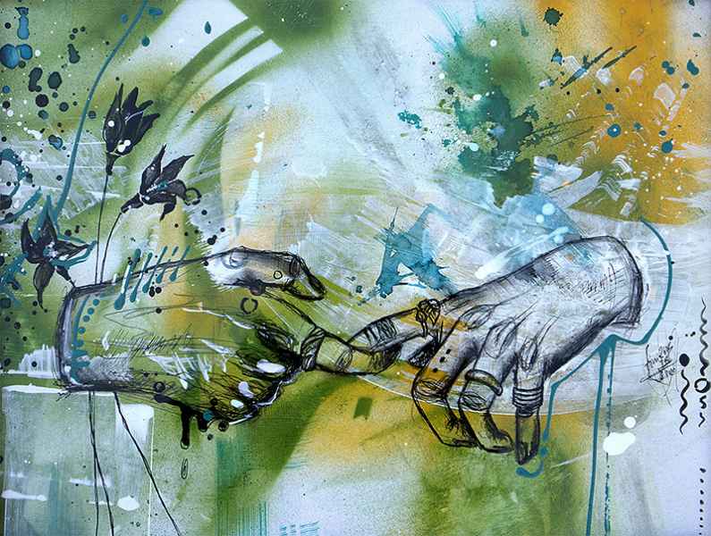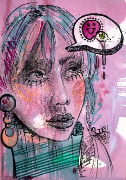 15,5x22cm | Leinwand | Acryl, Acrylmarker, Kohlestift, Pastellkreide